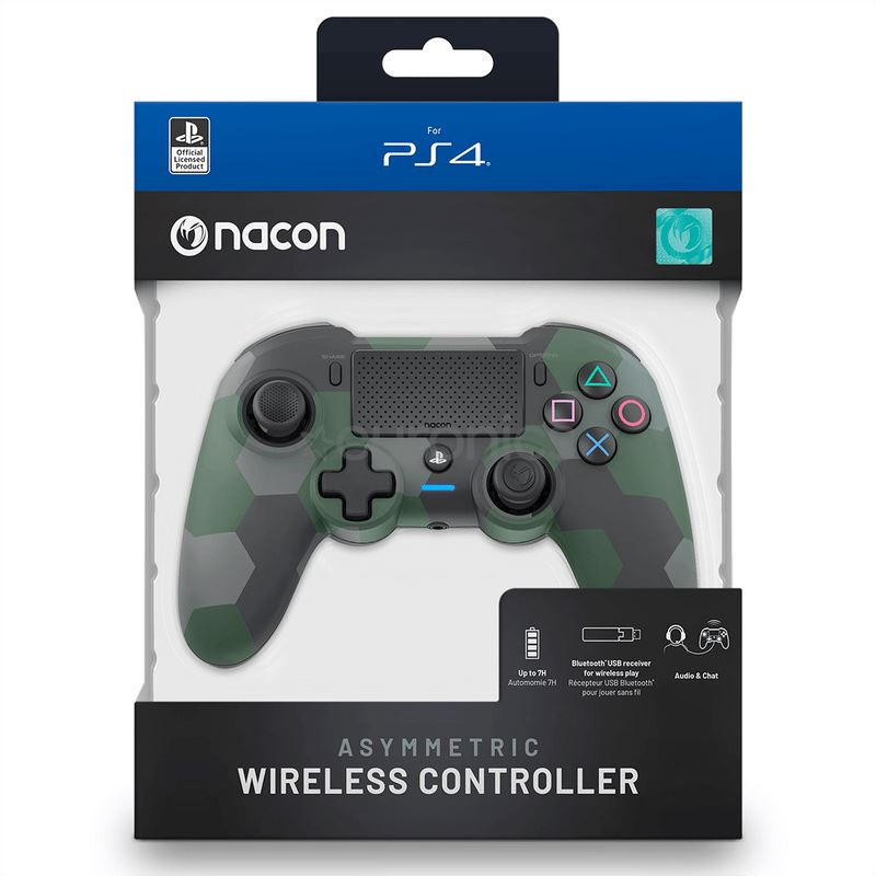The NACON Asymmetric Wireless Controller is equipped with a rechargeable battery and USB receiver, required to provide a Bluetooth? connection, with uninterrupted transmission up to 7 meters from the console, even during local multiplayer sessions. The Wireless Controller Bluetooth? connection via the USB receiver also allows for audio and chat functionalities through the headset jack.