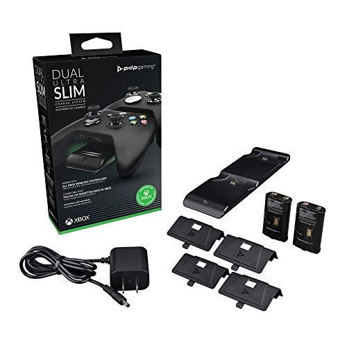Stay in charge, stay in place! With innovative features, the PDP Gaming Dual Ultra Slim Charge System for Xbox takes the guesswork out of whether your controller has connected and won’t get knocked out of place. Magnetic ports snap the controller into place for an optimal connection every time. With advanced, micro-suction material, the charge system will stay in place and only move when you want it to. The slim, modern design fits seamlessly into your living or gaming room. Cinematic, auto-dimming lights adapt to surrounding conditions to be less intrusive in the dark. LED indicators on the front show you the charge status of the controllers by moving while charging and remaining static when fully charged. The Dual Ultra Slim Charge System works with Xbox Series X|S and Xbox One. It’s officially licensed and comes with two rechargeable batteries and four battery doors*. Works with Xbox wireless controllers, excluding the Xbox Elite Wireless Controller Series 2. *Battery doors for Xbox Series X|S are labeled, ‘For controllers 2020 & later.’ Magnetic ports snap Xbox wireless controllers into place for a perfect connection every time Innovative, micro-suction material keeps your charger in place Cinematic lights will auto-dim based on surrounding light conditions, while LEDs indicate charge status Works with Xbox Series X|S and Xbox One Officially licensed by Xbox