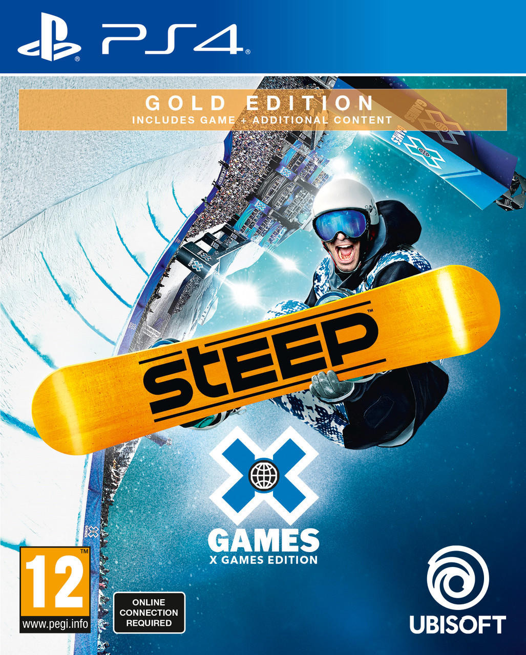 Please Note: Online Connection Required Join the ride and steal the show in the ultimate Steep experience! Ride a massive open world of the Alps and Alaska, master 8 extreme sports and go for the gold in the legendary winter sports competition : the X Games! Steep X Games Gold Edition Includes: Steep Base Game The Season Pass Year 1 X Games Pass Freely discover the mountain open world through snowy terrains and the skies, ride along with your friends and mix sports to create wild stunts, express your creativity and push your skills to pull off insane tricks and become a freestyle icon at the X Games. Enjoy a wide variety of adrenaline and fun fueled extra content such as Rockets Wings, 90s themed ski and snowboard mode and a huge range of customization possibilities. Game Features RIDE YOUR WAY Freely explore a breathtaking open world in the Alps and Alaska as you create your own path and decide how to experience this massive mountain playground, whether by ski, snowboard, wingsuit or paraglide. Discover and master 8 sports in total! MASTER THE MOUNTAIN Participle in a wide variety of challenges and prove that you are the king of the mountain by dropping into unique and spectacular challenges that put your skills to the test. Participate and compete with your friends in specific challenges designed for each sport, such as Big Air, Proximity Flying or Forest Slaloms. BECOME A FREESTYLE ICON AT THE X GAMES Participate in the epic ski and snowboard competition and steal the show as a freestyle prodigy in the making! Learn and master the skills to make it big at the X Games. Boost out of the SuperPipe or hone your slopestyle prowess on multiple jump features and new grind moves. Push your creativity at the Alaska X Games village and win the gold medal in the most epic snowparks ever created in Steep. Compete with other players to make it to the top of the leaderboard. LIVE UNFORGETTABLE MOMENTS WITH OTHERS Share thrilling, adrenaline-fueled experiences and the craziest stunts with other players. Seamlessly meet them and choose to follow them, play together or challenge your friends to beat records, lines and scores. SHOW OFF TO THE WORLD Capture and share videos and pictures of your craziest stunts and most inspired rides through gorgeous panoramas using the Photo and Director modes. Season Pass Year 1 Extreme Pack : 3 new sports (rocket wings, speed ride and base jump), new challenges and new customization items. Winterfest Pack : 1 new sport (sledge), new challenges to become the most impressive rider of the Winterfest, new costumes and customization items. Adrenaline Pack : new costumes, snowboards and wingsuits + the Moonlight Pack that offers glowy costumes and nocturnal challenges. Helicopter tickets. 10 000 Steep credits. X Games Pass X Games DLC : discover a whole new competition in Alaska, win the gold in the most impressive snowparks in Steeps history and overcome the X Games fierce challenges. 90s DLC : Give your game that old school vibe and make Steep look like a 90s winter sports game: Get 3 exclusive old school customizations, the tricks, the music, its all from back in the day! Rocket Wings DLC : soar through skies and valleys in the Alps & Alaska at break-neck speed with 15 new challenges for every daredevils favorite sport, Rocket Wings! Get 3 exclusive customizations for your Rocket Wings so you can stand out from the other riders.